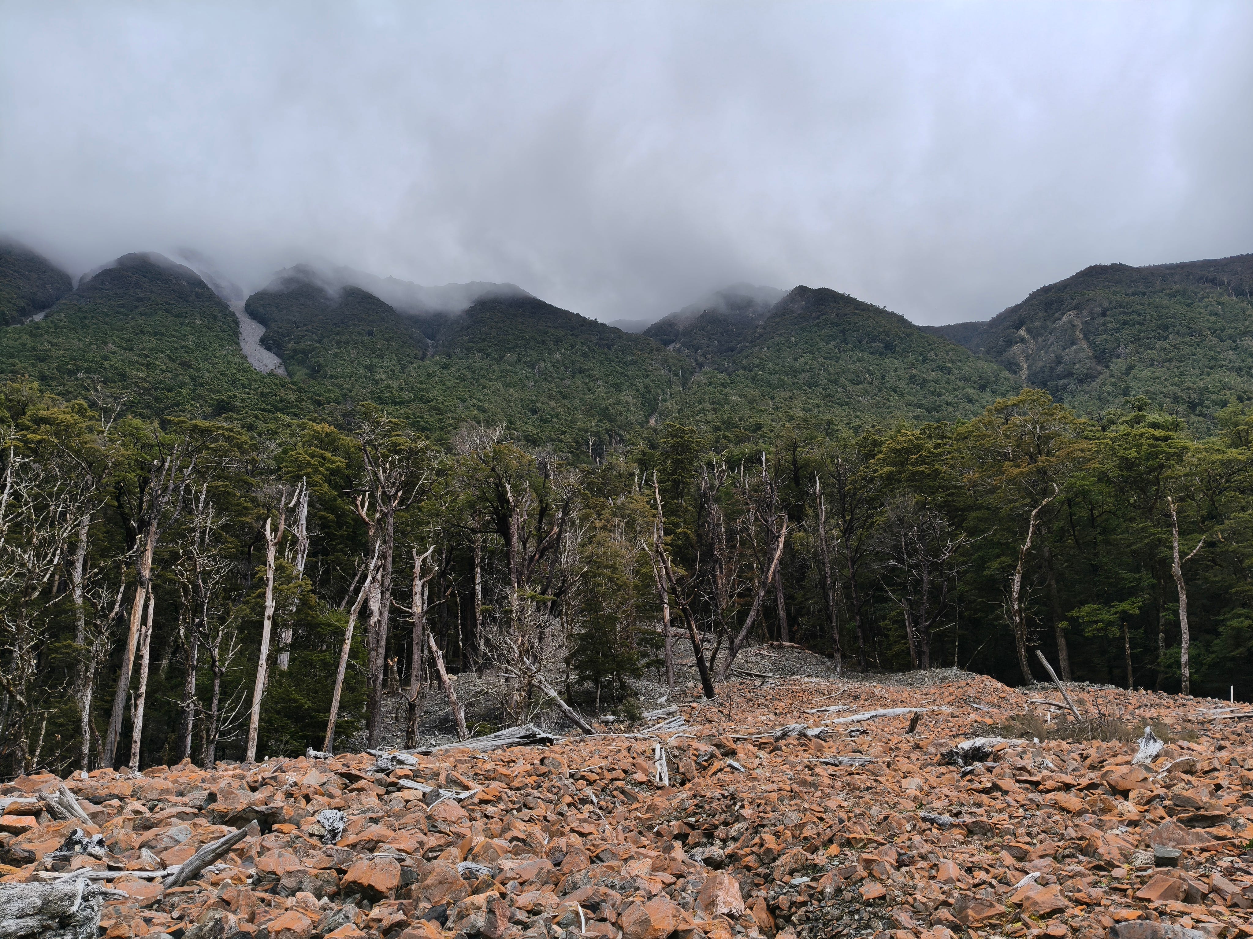 It wasn’t. Every kilometre up the valley had to be earned. The track had been severely washed away in places and I clambered through a lot of fallen trees, but nothing slowed me down like the eventual gravitational strain of my pack.